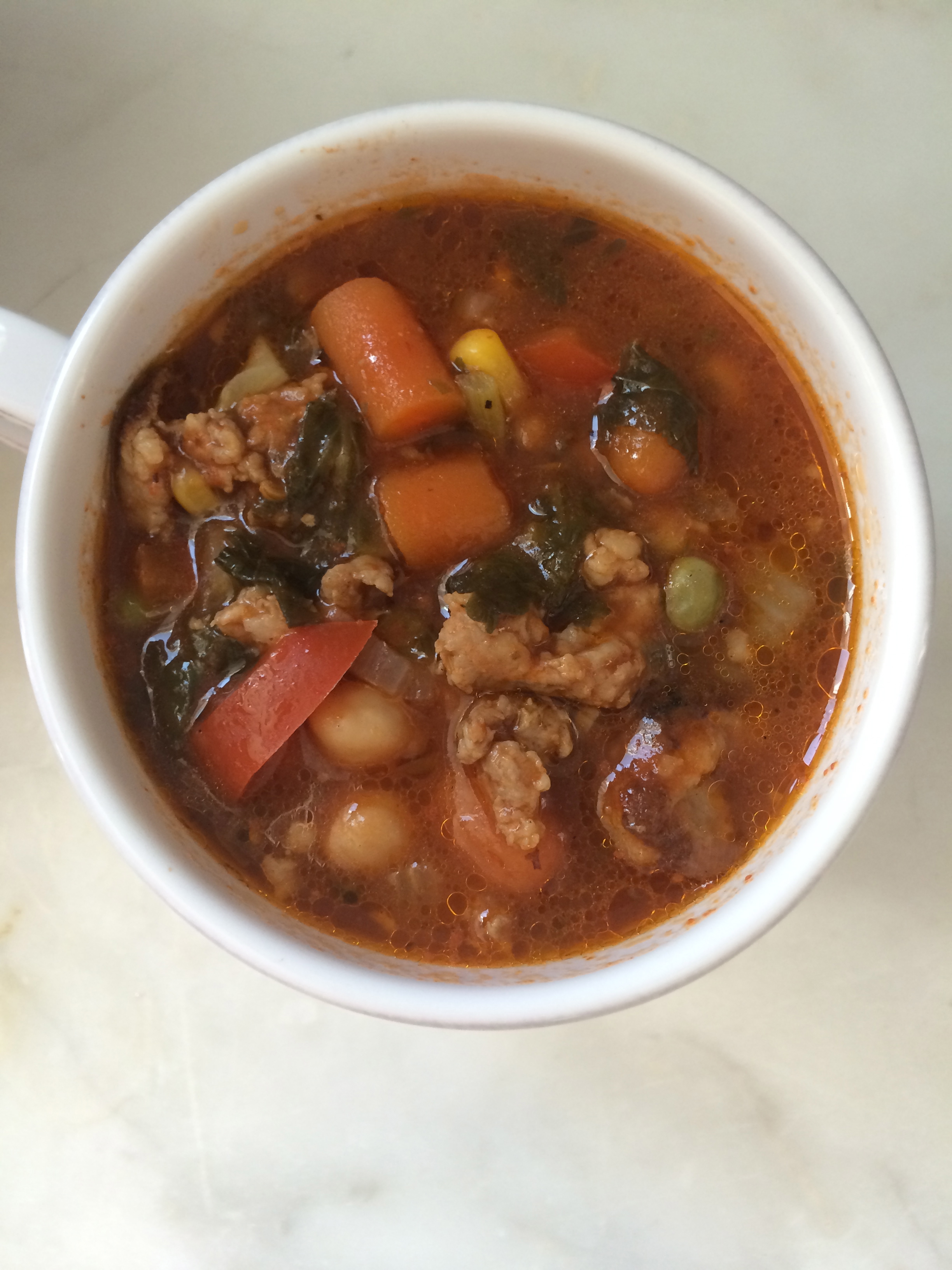 Vegi, Ginger and Sausage Soup (click here for recipe)