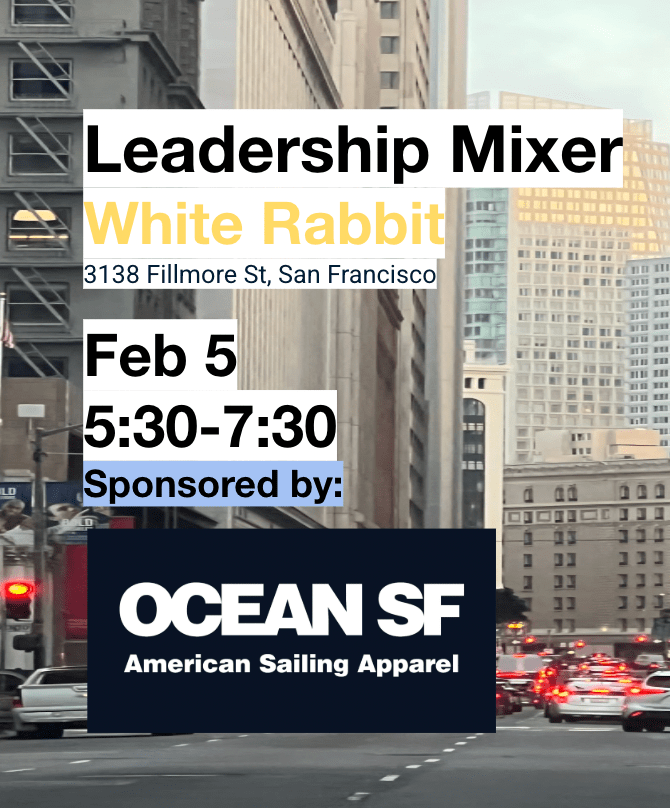 I have wanted to do this for a long time, and we are finally doing it. It’s never easy putting yourself out there. There is always a fear of failure, but we are taking the plunge and hope it will be a big success and helpful for others. Ocean SF is hosting its first Leadership Mixer in the Marina District on February 5th, and we’d love for you to join us.